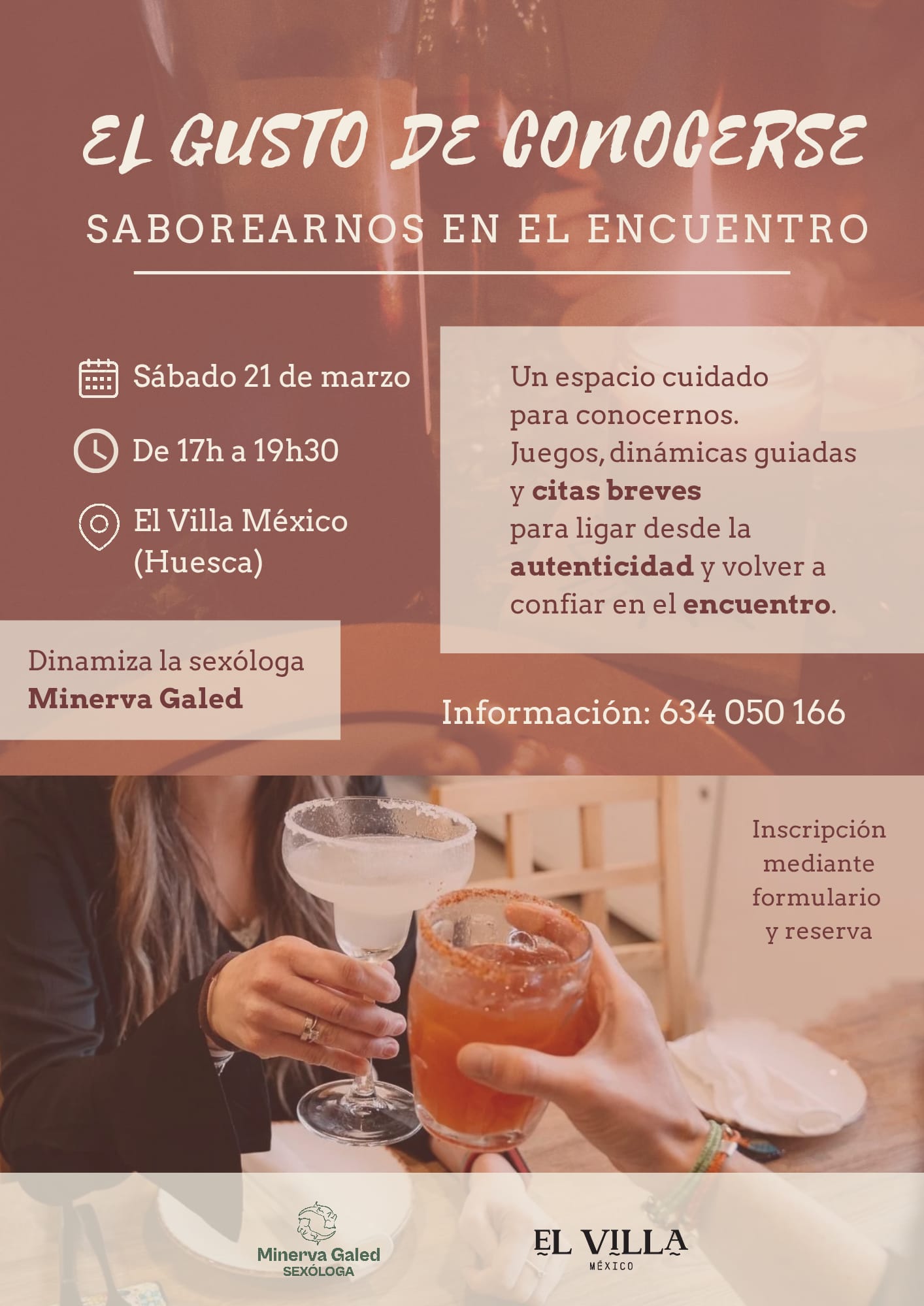 Taller / evento de citas rápidas en el que poder divertirse conociendo gente nueva sin más expectativa que pasar un rato agradable en buena compañía.